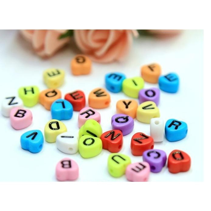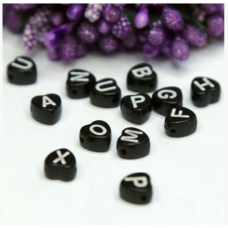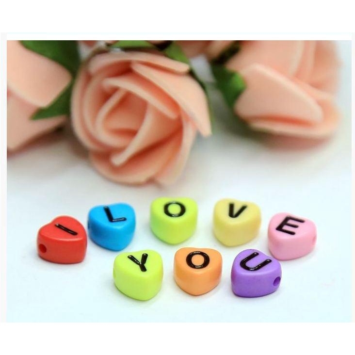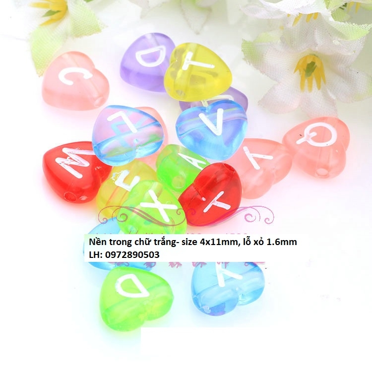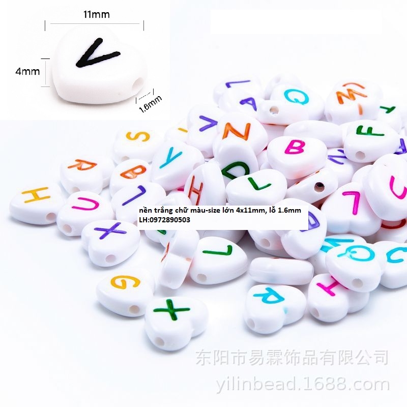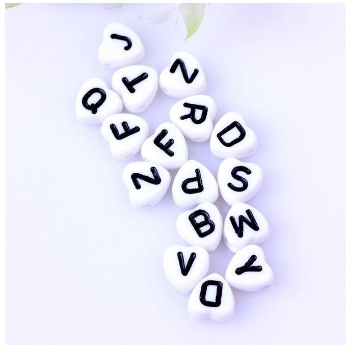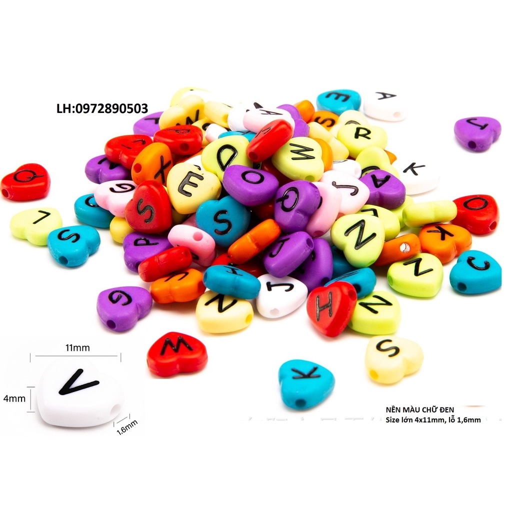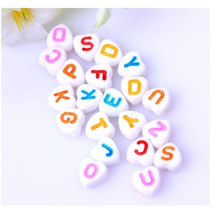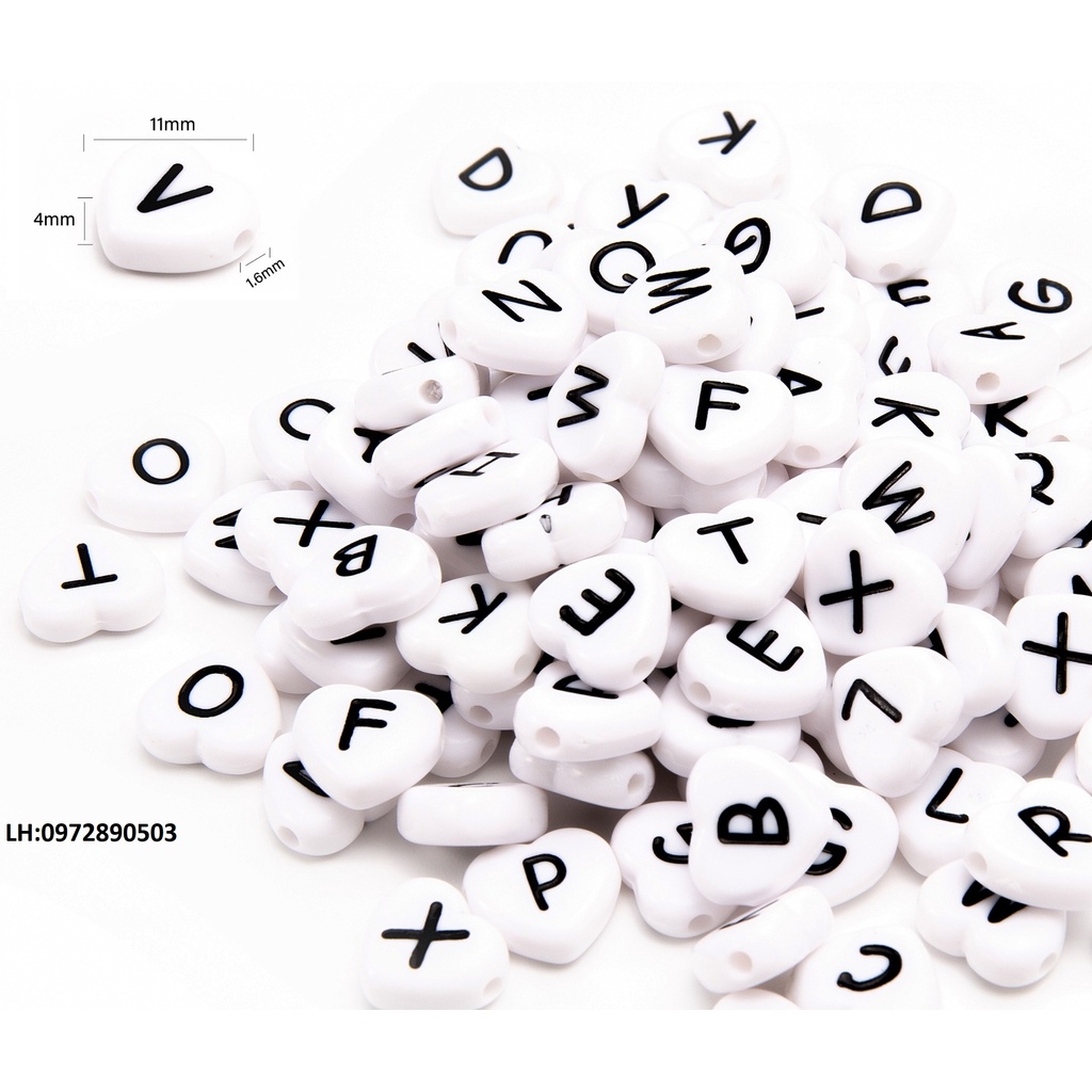 set 5-25gam Hạt Chữ Cái trái tim đủ loại 4x7mm, 4x1mm làm vòng hạt, trang sức