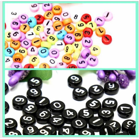 set 5-25gam Hạt Chữ số tròn nhiều màu 4x7mm
