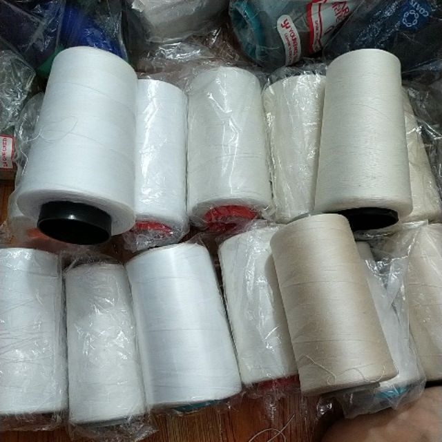 Thanh lý giá rẻ cuộn chỉ cotton 5000m dùng làm chỉ may, chỉ làm tua rua... Màu trắng & kem ngẫu nhiên, có khác màu giữa các cuộn.
