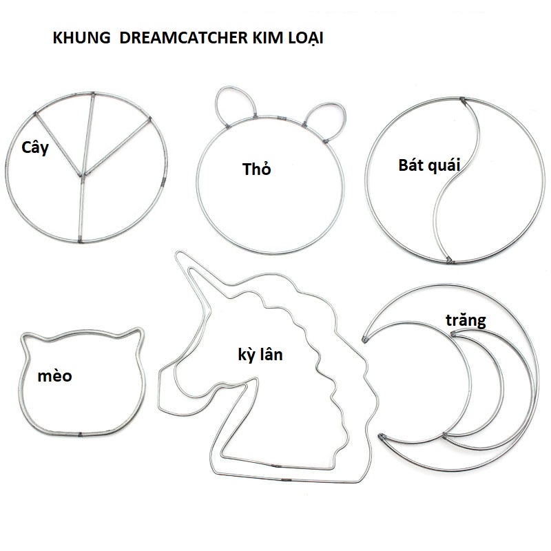 Vòng khung làm dream catcher, dreamcatcher kỳ lân,con thỏ, con mèo... chất liệu sắt xi số lượng: 1 cái